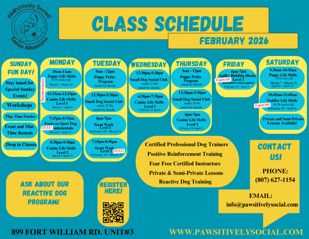 Group classes not for you? We also offer private and semi-private lessons that can be customized to suit you and your dog’s unique needs. We specialize in leash reactivity, co-operative care and socialization skills for dogs of all ages.